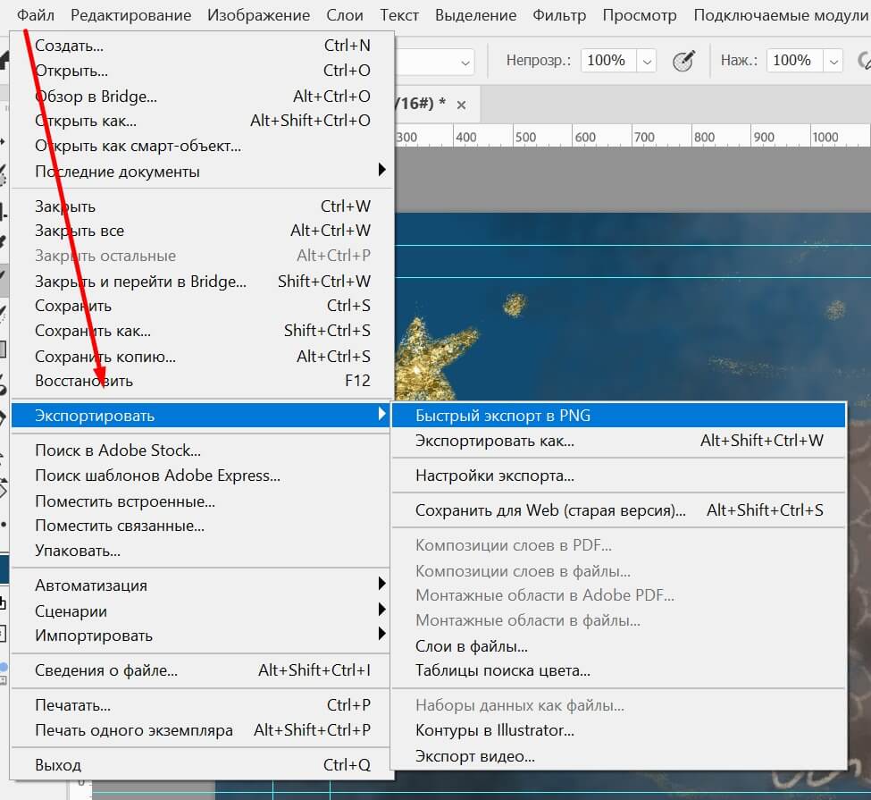 А чтобы в процессе работы согласовать дизайн с клиентом, можно выбрать быстрый экспорт в формат PNG.