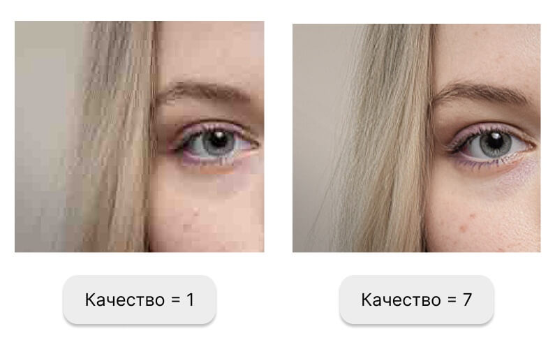 При экспорте можно отрегулировать качество — от 1 до 7 пунктов. За счет сжатия файл получается легким, но слои не сохраняются и прозрачный фон пропадает.