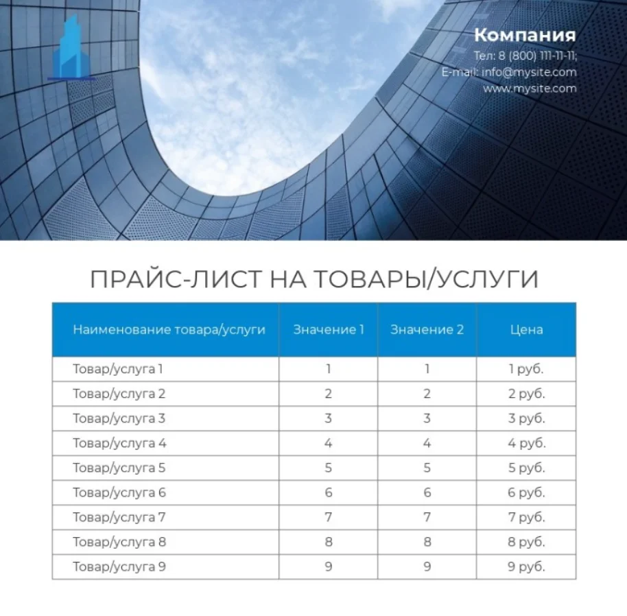 Выглядеть информационный прайс-лист может так: