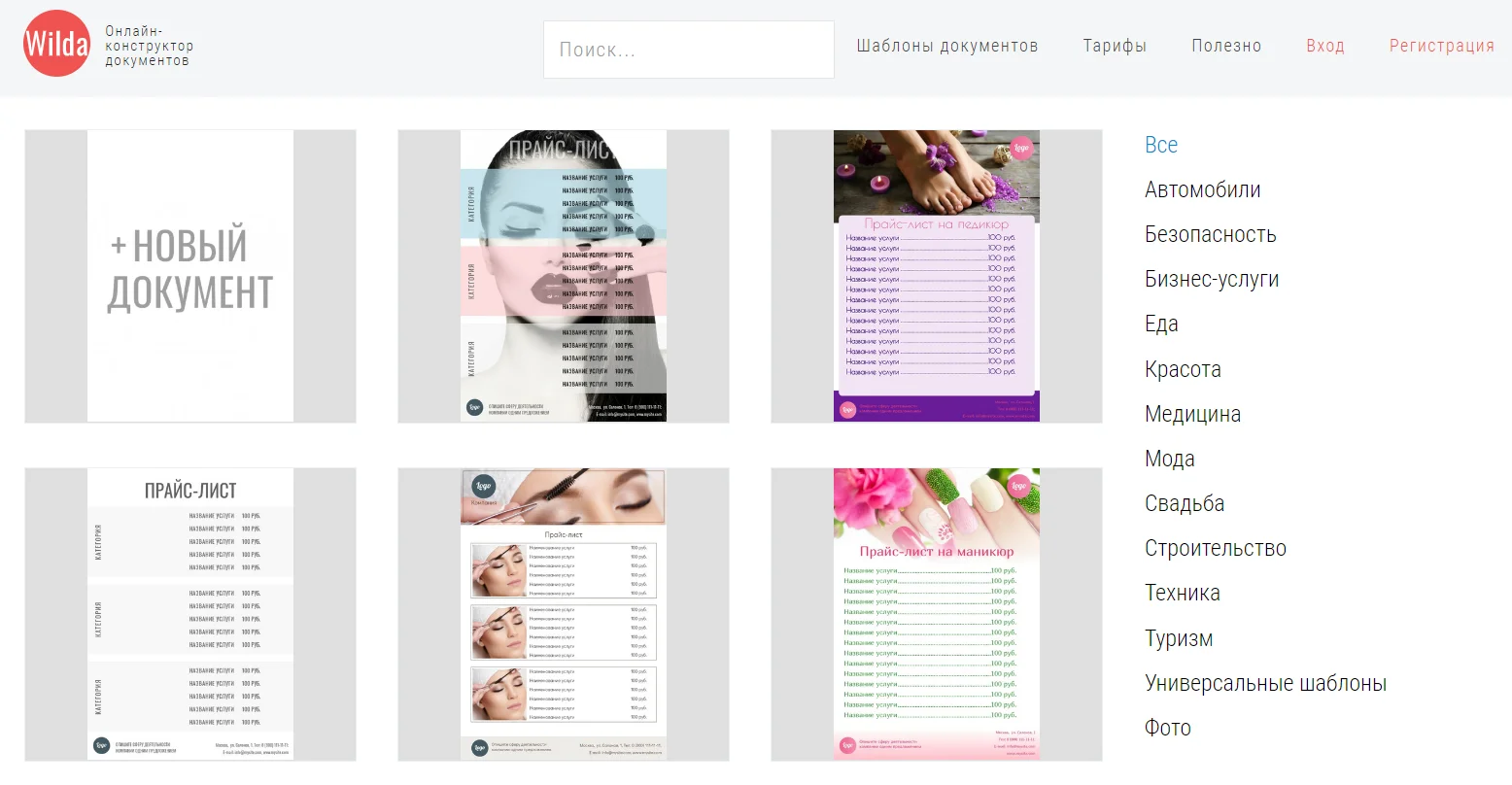 Есть и специальные веб-сервисы для создания прайс-листов. Например: