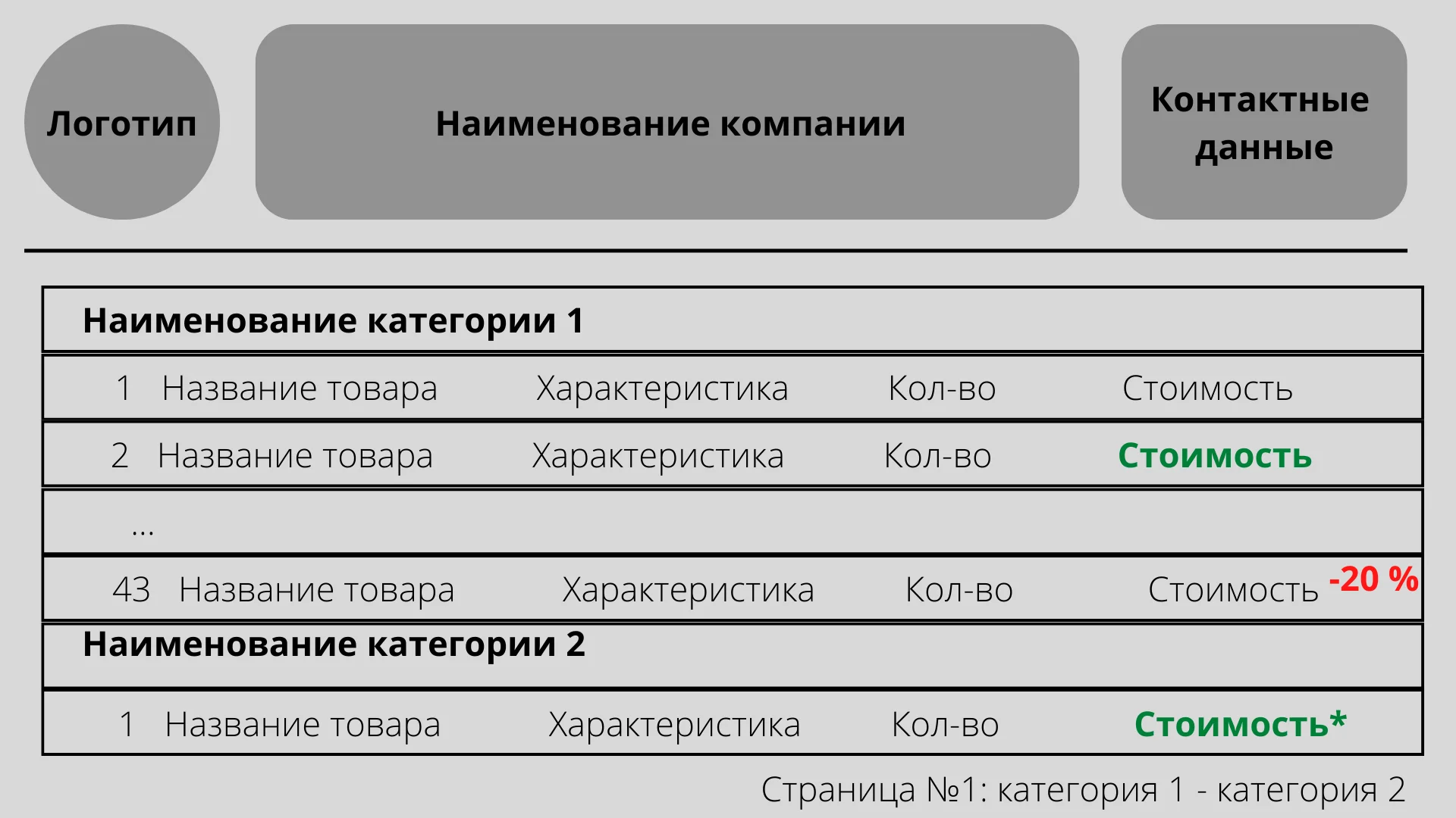 Это примерная структура — у прайс-листов нет унифицированной формы.
