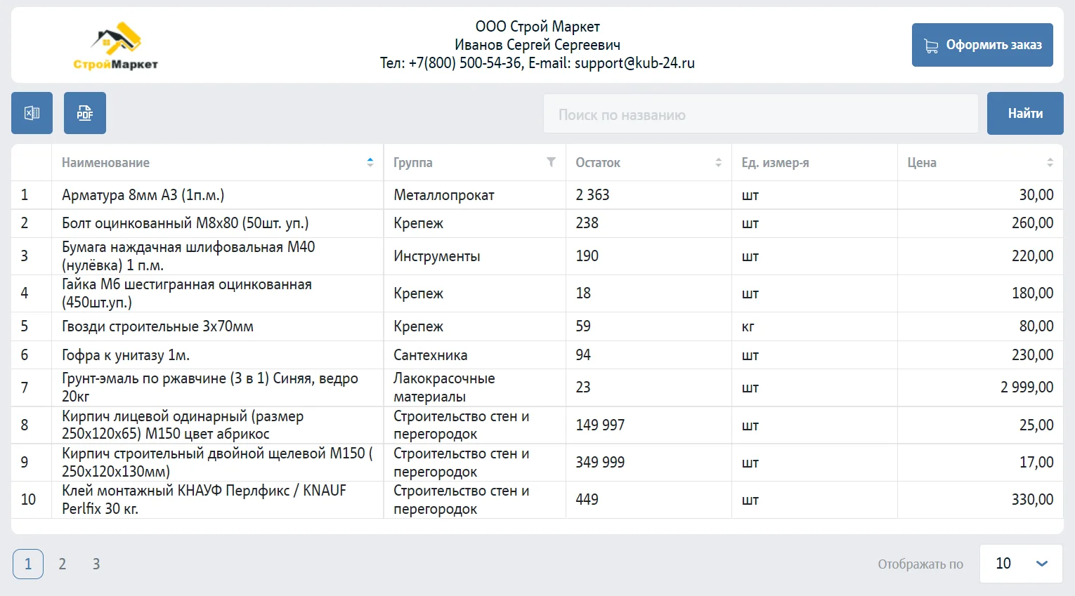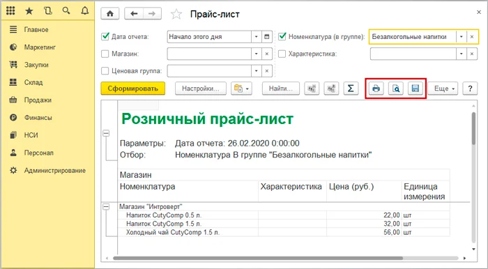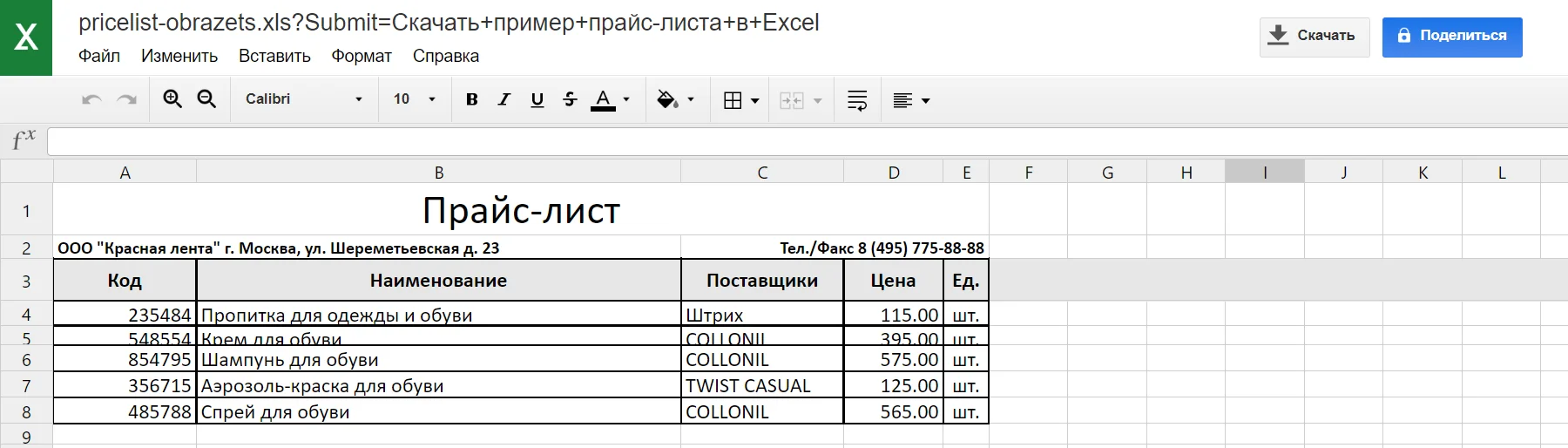 Прайс, созданный в 1C. Источник