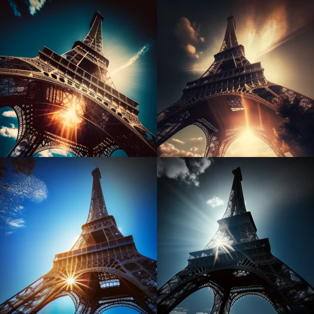 Вот что нейросеть выдаёт по запросу «Эйфелева башня в яркий день с прекрасным солнечным освещением».