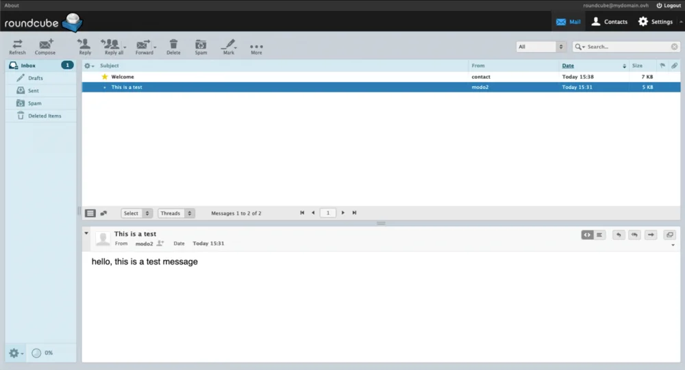 - Зайдите в веб-клиент (Roundcube или RainLoop) под новым пользователем.