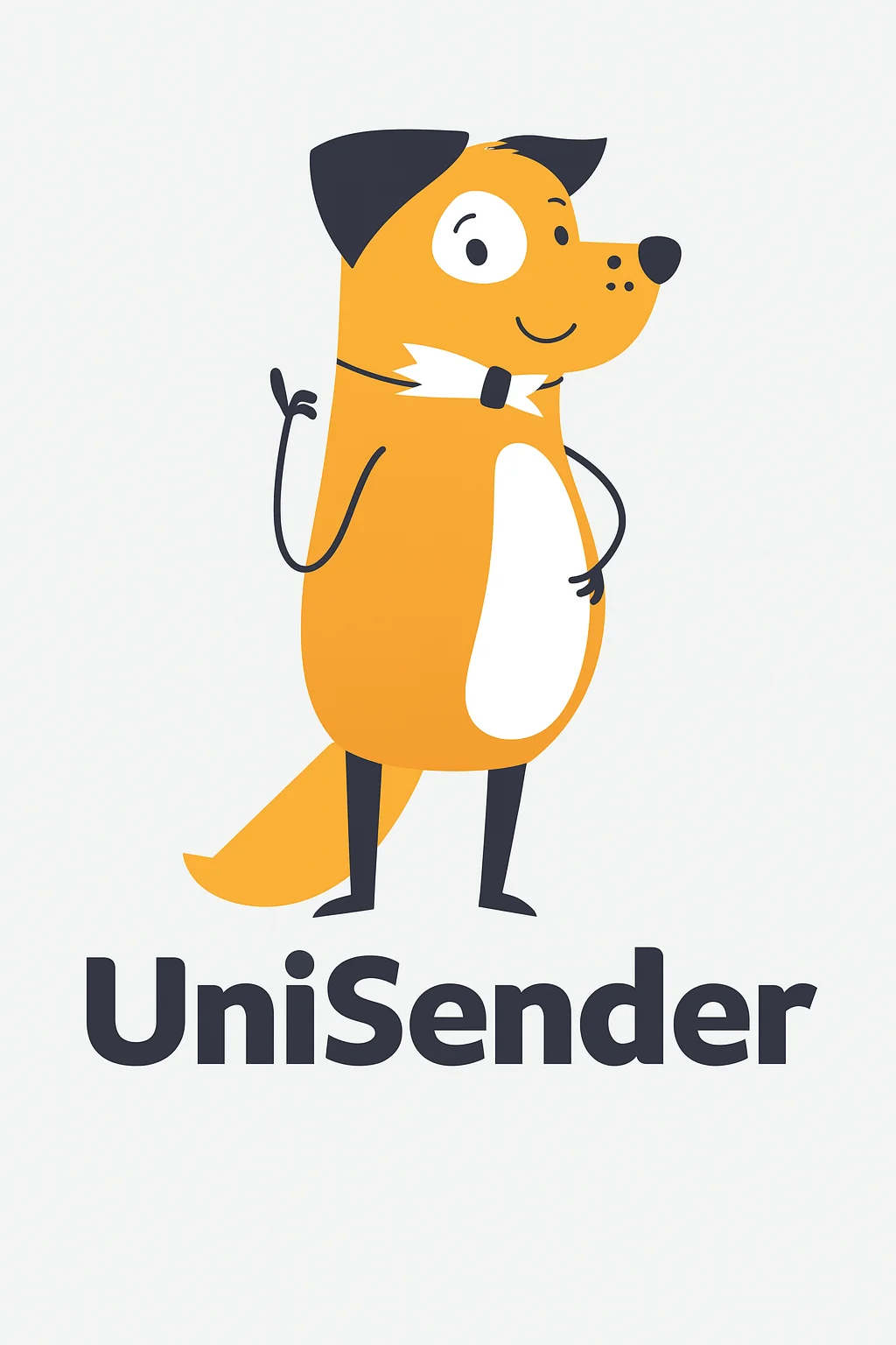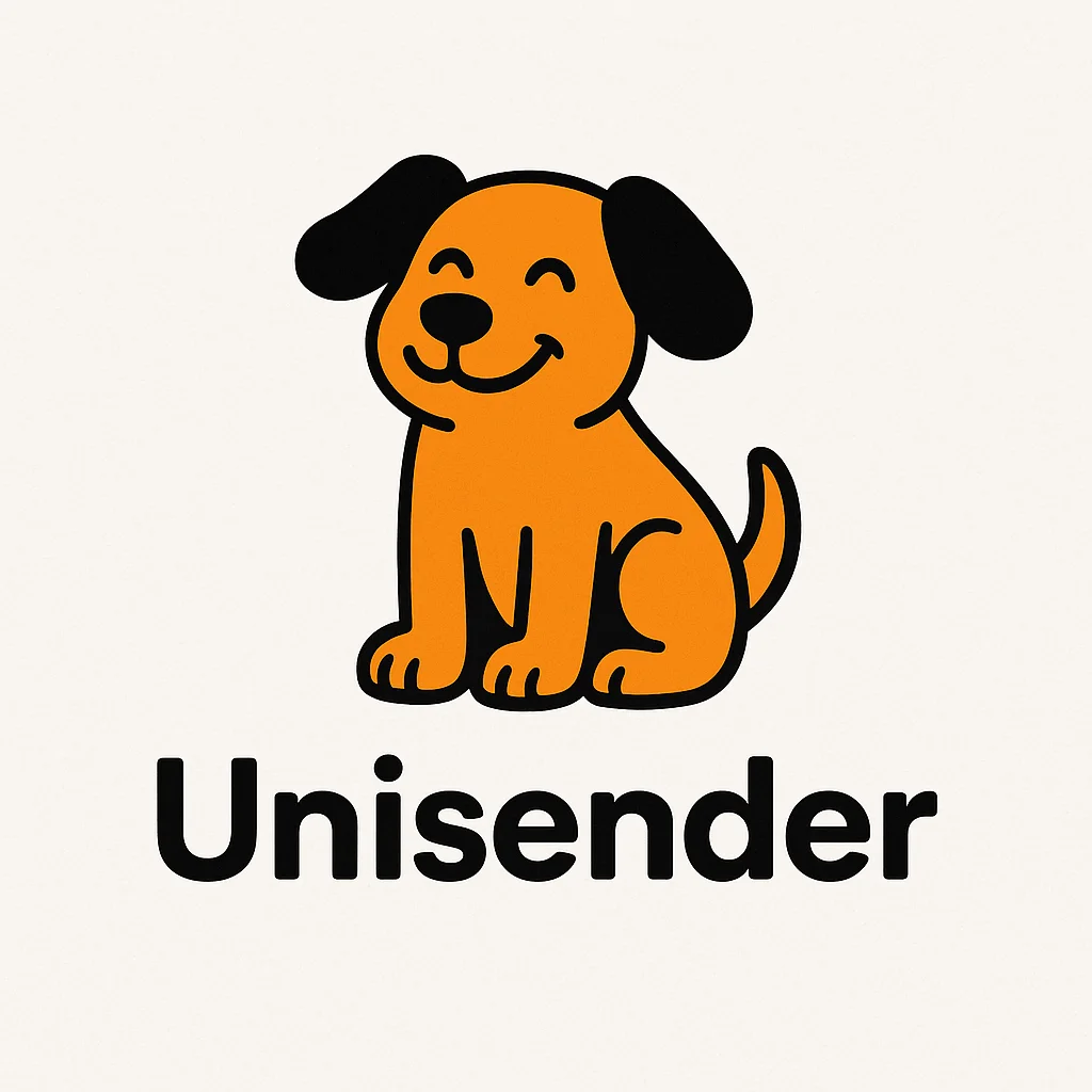 Чуть проще и быстрее логотип можно сделать в ChatGPT. Там для работы нужно выбрать модель 4o и прописать запрос вроде «сделай логотип для компании на белом фоне. Нарисуй веселую оранжевую собаку с черными ушами, под собакой добавь подпись Unisender».