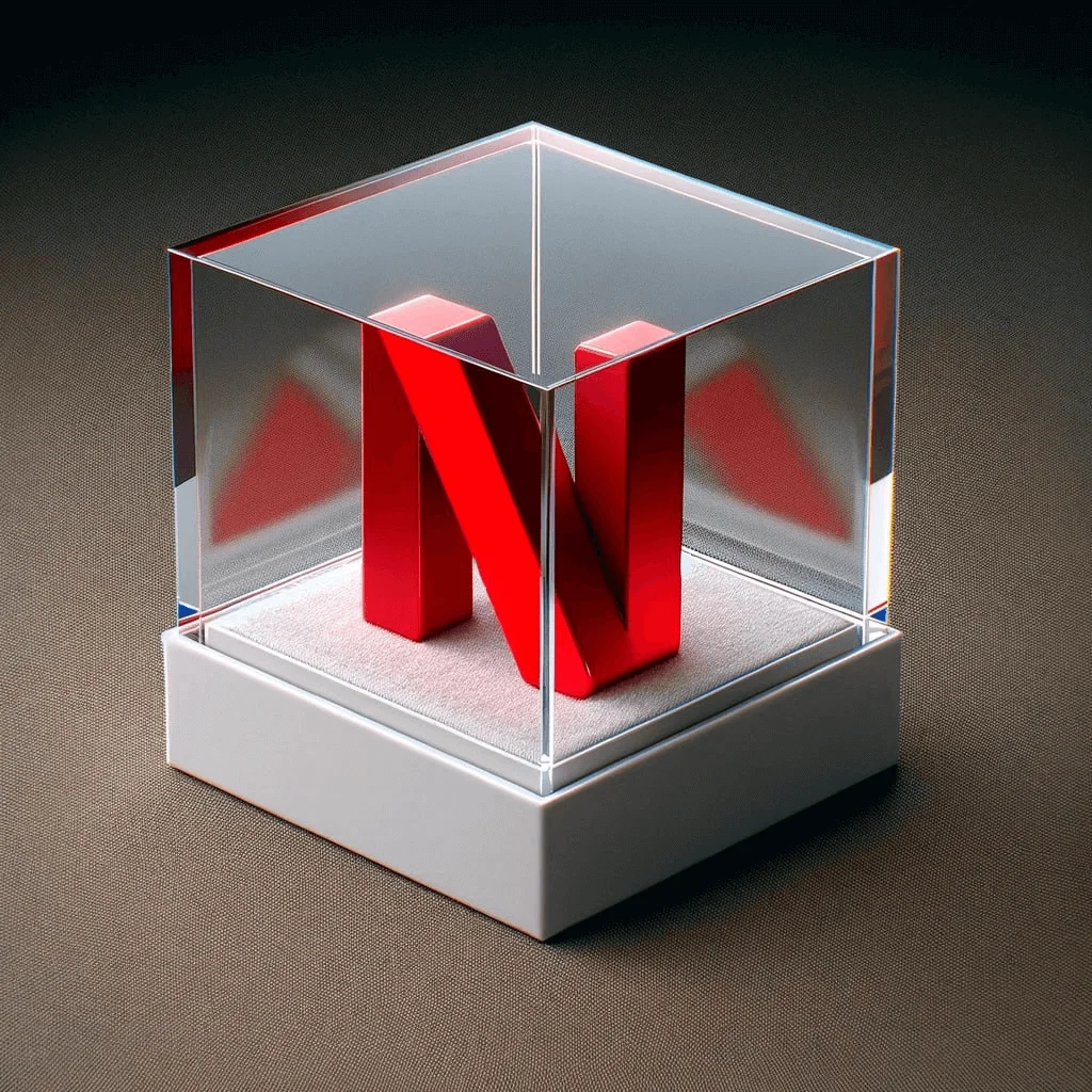 photorealistic image of a small [Цвет] 3D [Название компании letter 'Буква'] logo encased in a luxurious transparent box, viewed from an enhanced side angle to better reveal the 3D shape of the logo. The box should be white, exquisitely designed, featuring crystal-clear glass with refined, sharp edges and polished surfaces that emphasize the depth and three-dimensionality of the logo inside.