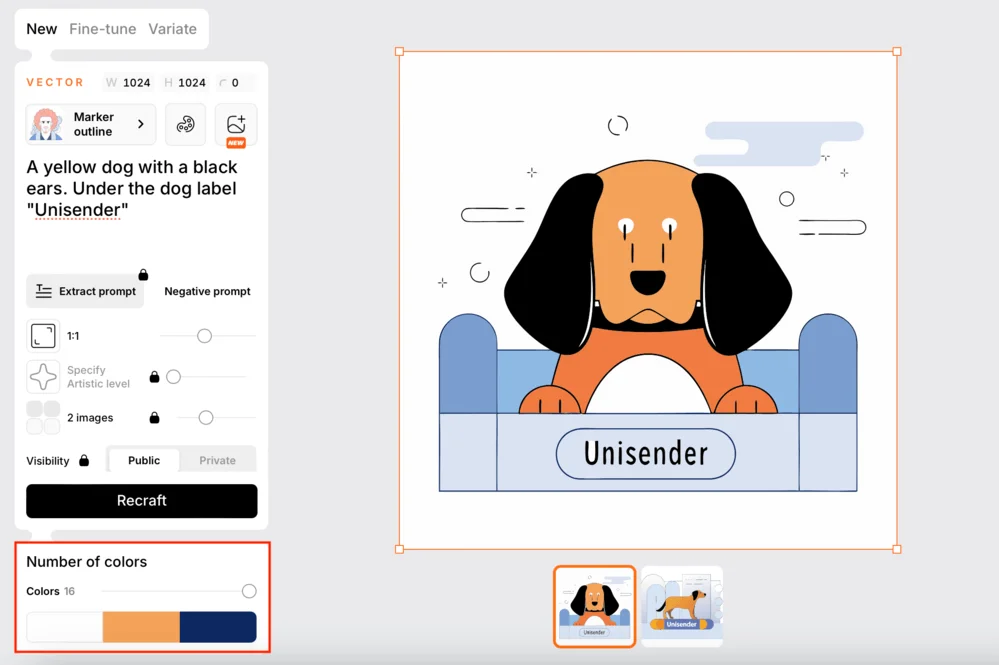 Recraft. Нейросеть для генерации логотипов в векторном формате. В сервисе сразу можно получить готовый SVG и не заниматься конвертацией. Recraft предлагает настройки стиля, цветов, шрифтов и дает возможность редактировать результат прямо в интерфейсе. Плюс — точная работа с текстом, что особенно важно для логотипов.
