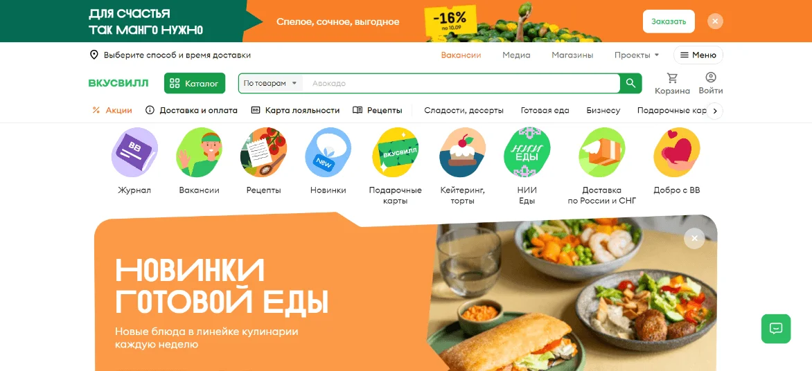 А так выглядит сайт «ВкусВилла»: