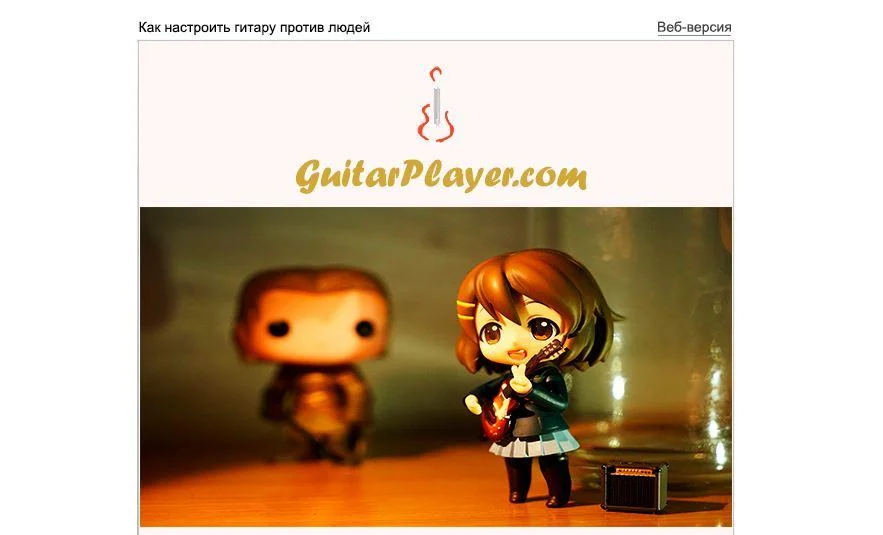 Предположим, нам нужно сделать макет письма для портала GuitarPlay.com. Этот сервис помогает с поиском людей в музыкальную группу, арендой репетиционных баз и организацией концертов. У портала есть сайт и блог.