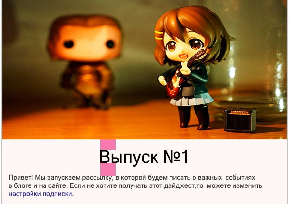 Допустим, наша задача — кратко описать, что нового случилось в блоге и на сайте сервиса. Значит, делаем письмо-дайджест.