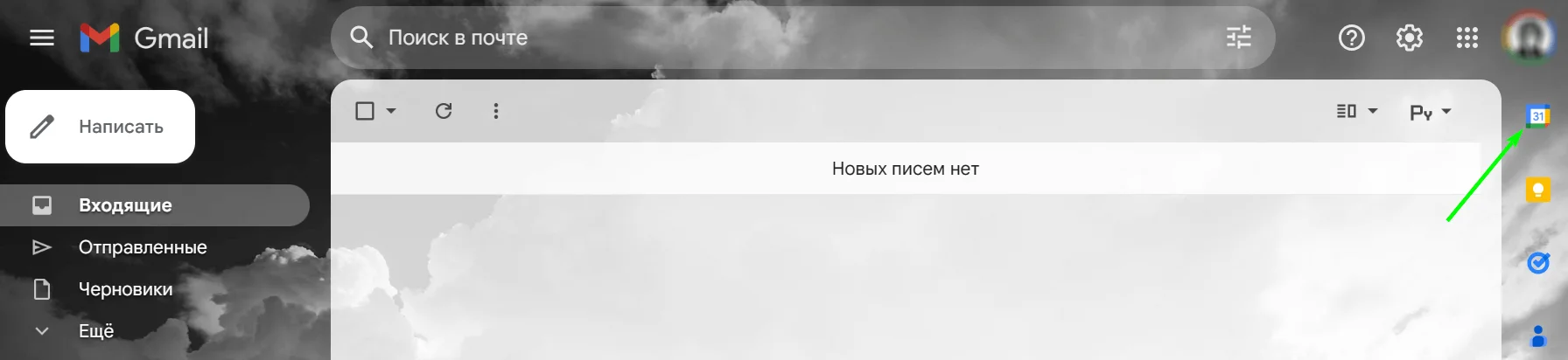 Шаг 1. Откройте Google Calendar. Сделать это можно по прямой ссылке либо через интерфейс Gmail, выбрав иконку календаря на панели справа.