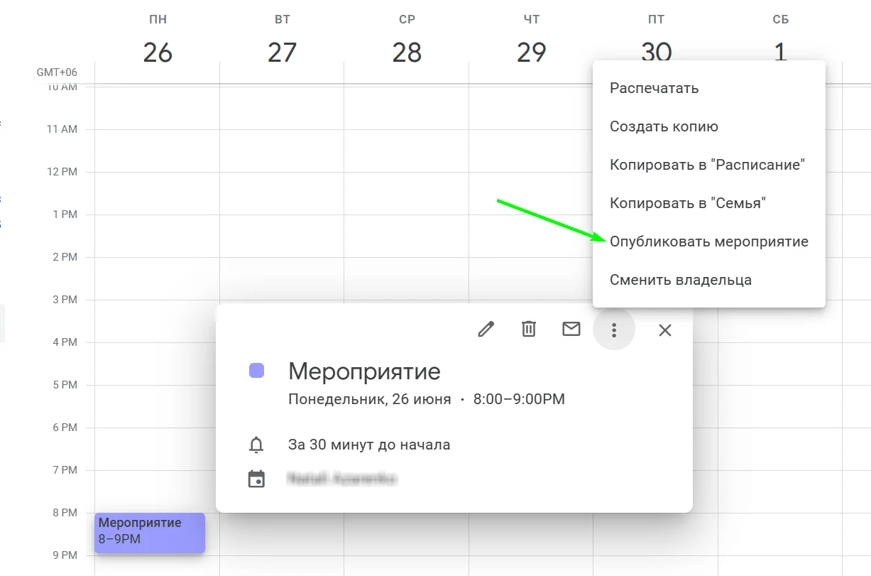 Поделиться ссылкой на мероприятие в Google Calendar можно любым удобным способом. Например: