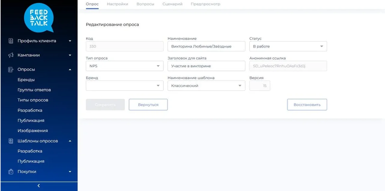Возможности. FeedBackTalk — единая платформа управления клиентским опытом, сбора обратной связи и проведения опросов.