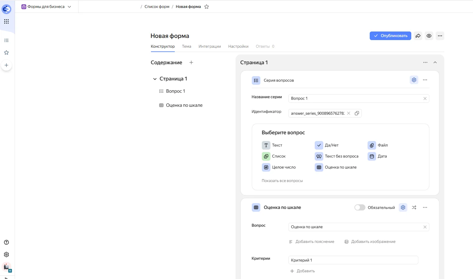 Возможности. Продукты Яндекса и Google очень похожи. Основное отличие в видах вопросов — у Яндекса их больше. Помимо выбора одного и нескольких ответов, есть, например, форматы «Да/Нет» и числовой. Но есть и минус: для создания каждого вопроса открывается новое окно — а это не очень удобно.