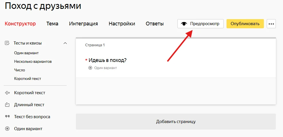 В любой момент создания формы вы можете проверить, как ее будет видеть читатель. Для этого нужно нажать на кнопку «Предпросмотр» над формой.