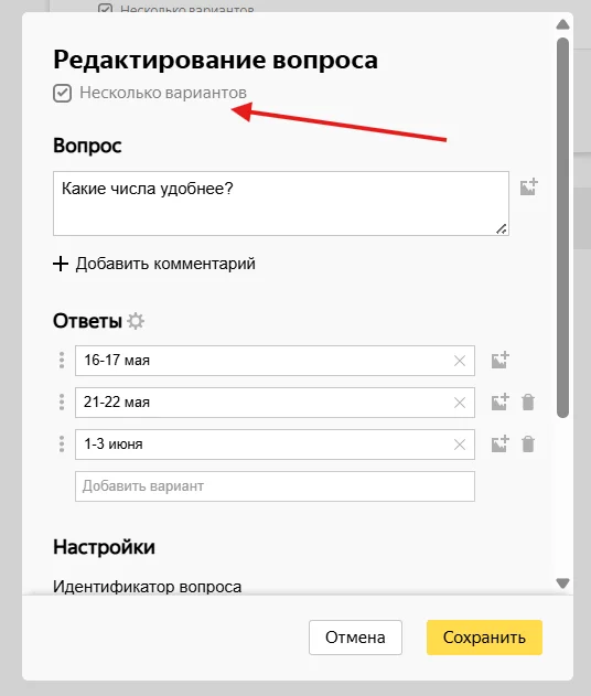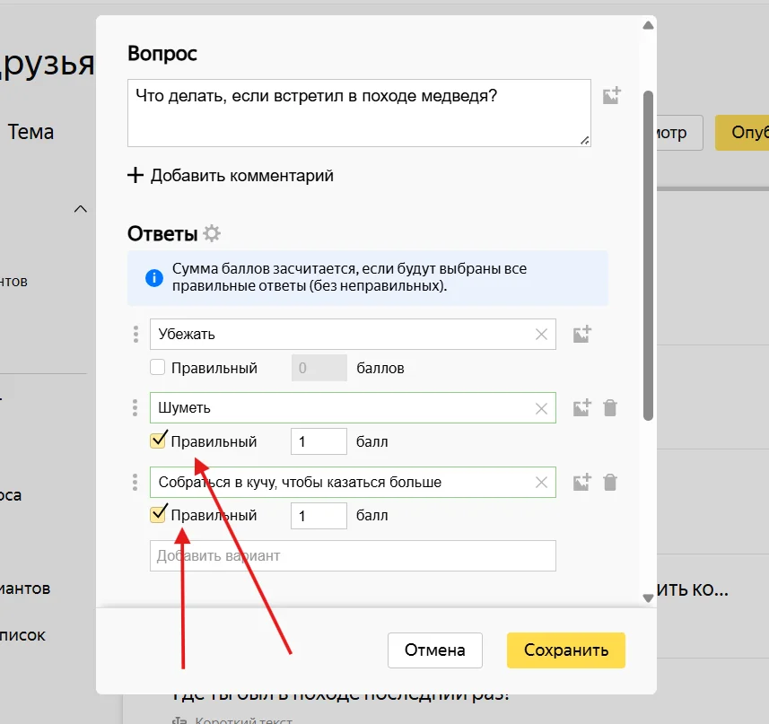 По аналогии с одним вариантом ответа можно добавить вопросы, на которые можно выбрать несколько ответов.