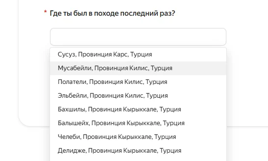 Теперь, когда участник будет отвечать на этот вопрос, система предложит ему выбрать локацию.