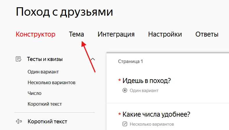 После заполнения формы ее нужно оформить. Для этого перейдите в раздел «Тема».