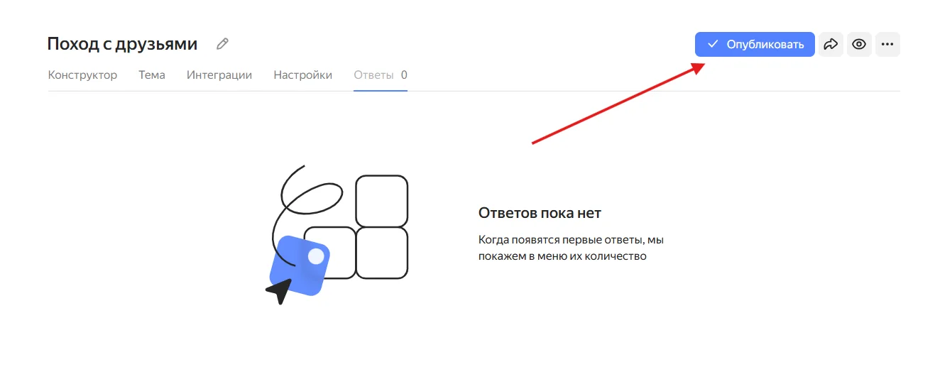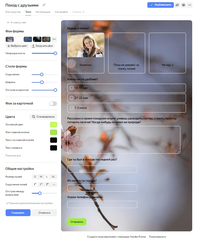 После всех настроек можно публиковать форму и рассылать опрос друзьям или выставлять на сайт.