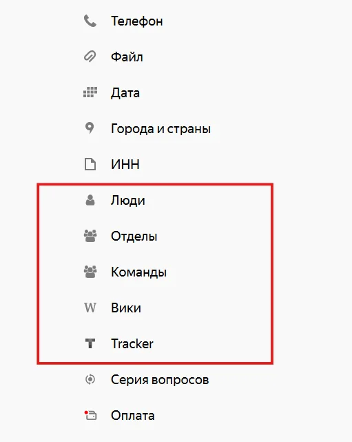 Yandex Tracker организует процессы в компании — помогает распределять задачи между отделами и сотрудниками и следить за их выполнением. В формах в блоке Трекер участник опроса может выбрать «сущность» — например, проект, над которым работает его команда.