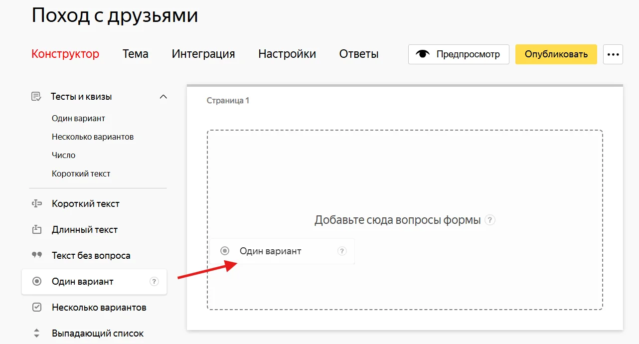Теперь можно наполнить форму вопросами.