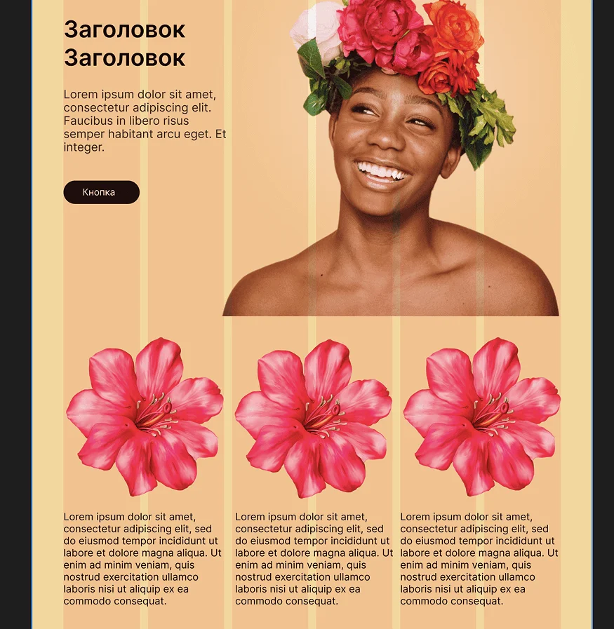 Выберите читаемый шрифт. Лучше — гротески без лишних декоративных элементов. Для основного текста подойдут бесплатные простые шрифты из Google Fonts — например, Inter или Roboto. Для заголовка иногда можно использовать вторую гарнитуру в качестве шрифтовой пары. Скажем, с засечками, но тоже читабельную. Больше двух разных шрифтовых семейств брать не стоит.
