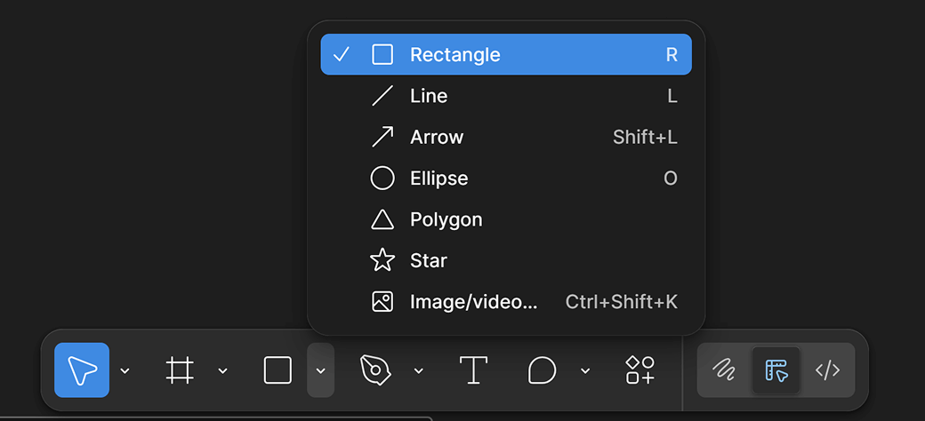 В Figma есть шаблоны фреймов для разных устройств. Полное меню открывается, если кликнуть на значок с сеткой в нижней панели или зажать горячую клавишу А. Выбираем один для ПК (Desktop → Desktop) и один для мобильной версии (Phone → IPhone 16).