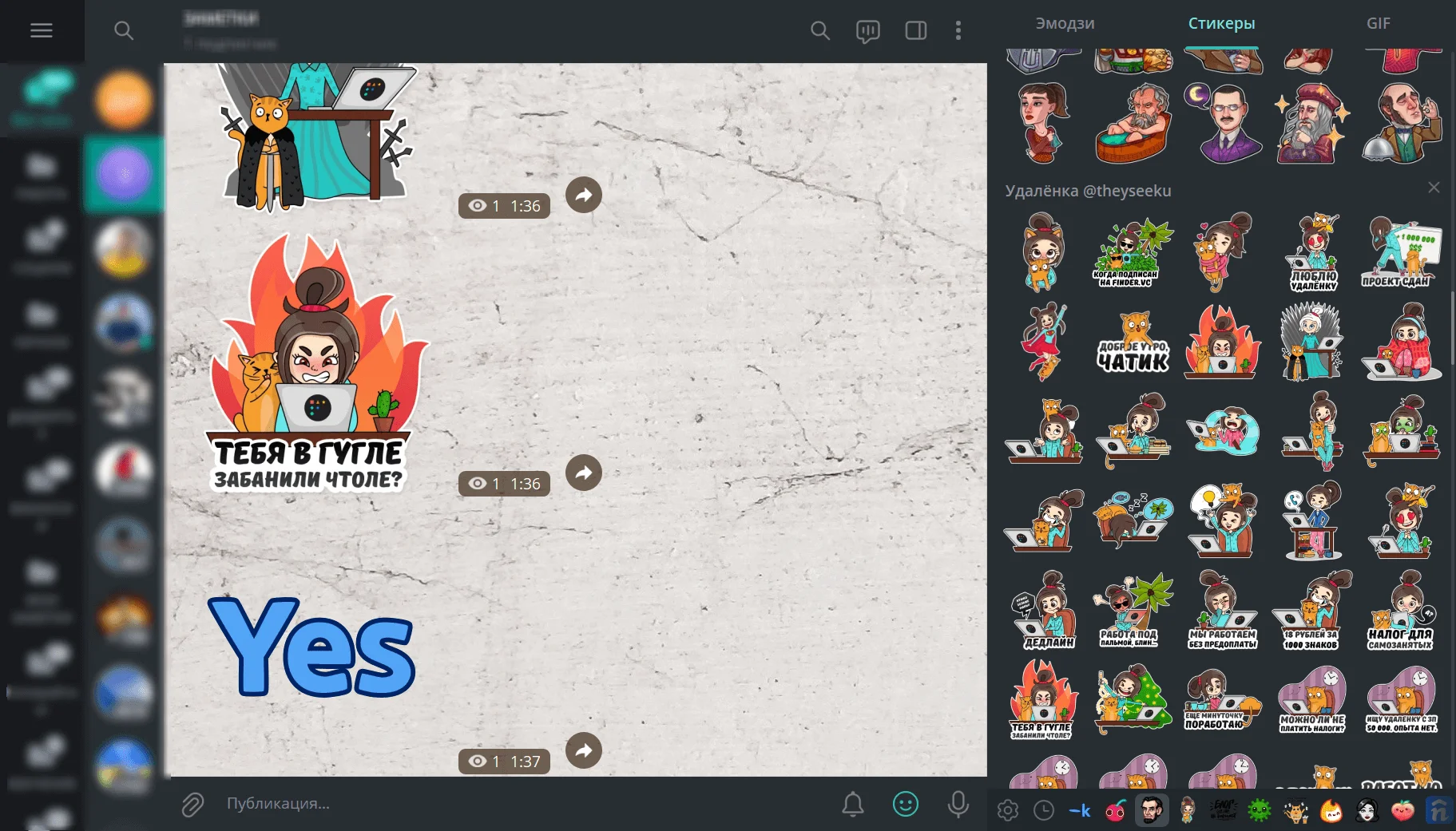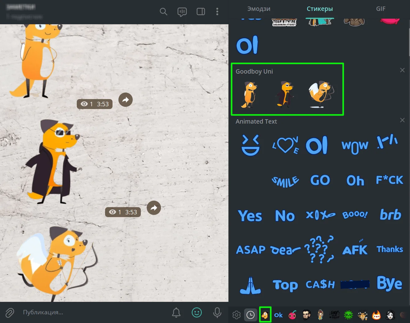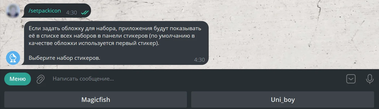 11. Теперь мы можем использовать созданный стикерпак в переписке.
