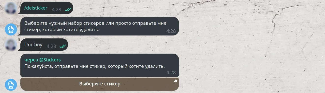 Удалить наклейку из стикерпака — /delsticker. Отправьте стикер, который нужно исключить из набора.
