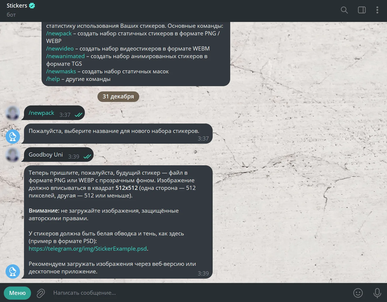 Пошаговая инструкция по созданию стикерпаков в мессенджере