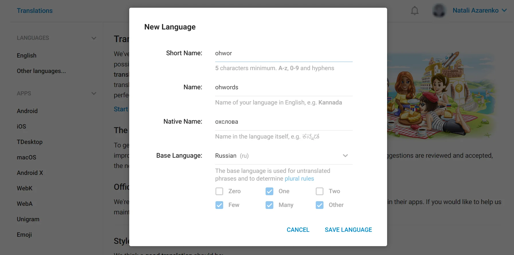 В целом все правила направлены на то, чтобы добавленный язык выглядел уместно и подлинно. Дополнительные требования Telegram к языковой локализации предполагают, что:
