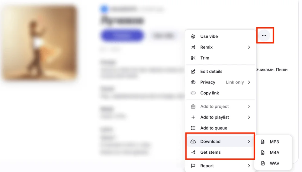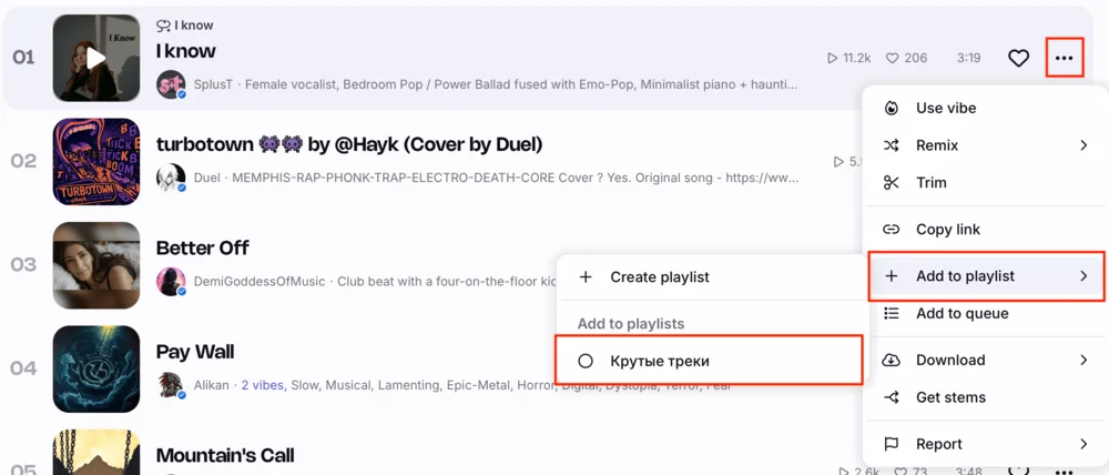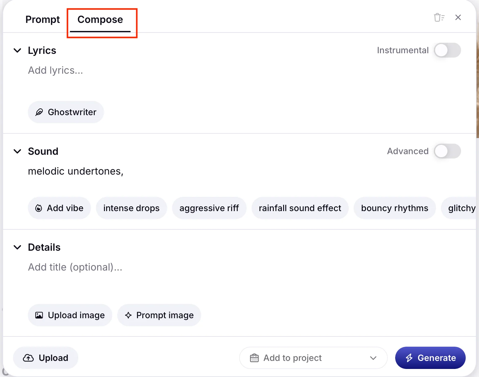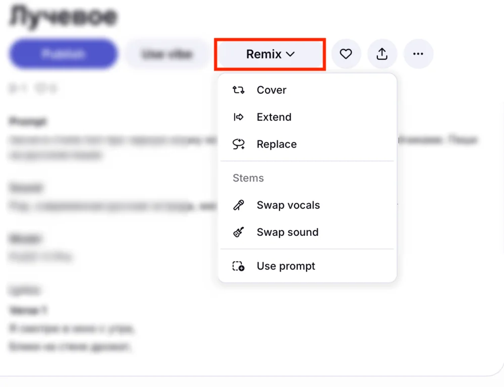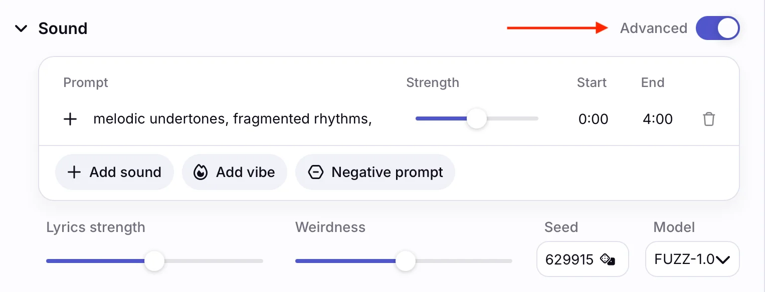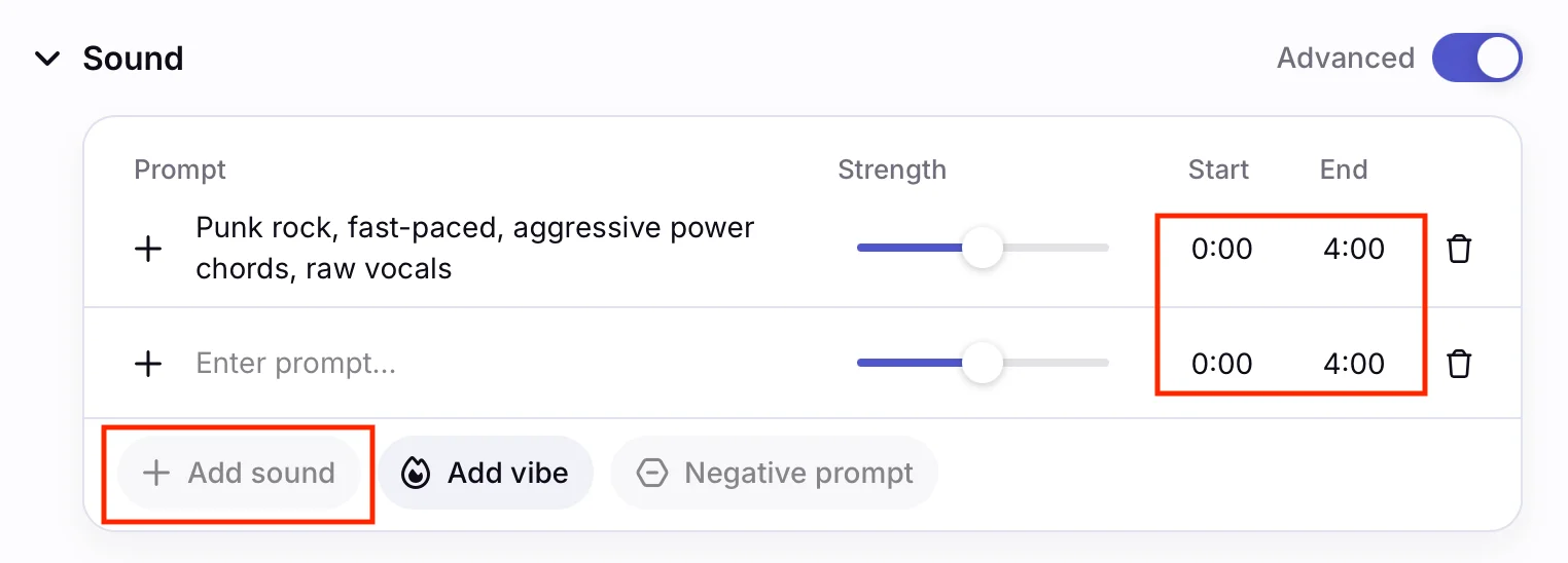 - Add sound — написать промпт для звуковых эффектов в треке.