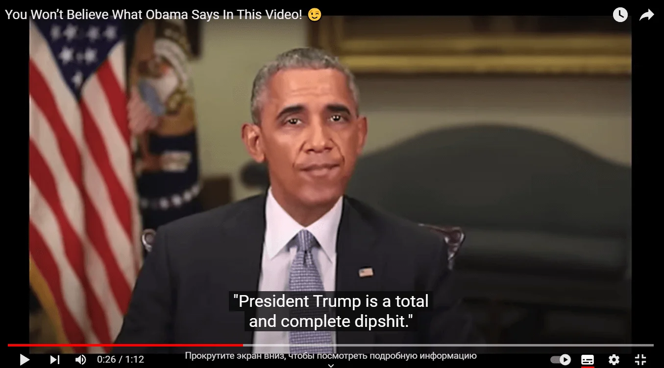 Например, в 2018 году злоумышленники создали дипфейк с бывшим президентом США Бараком Обамой, в котором он оскорбляет нового президента Дональда Трампа. Ролик стал вирусным и быстро разлетелся по соцсетям — люди возмущались, пока не поняли, что это дипфейк.