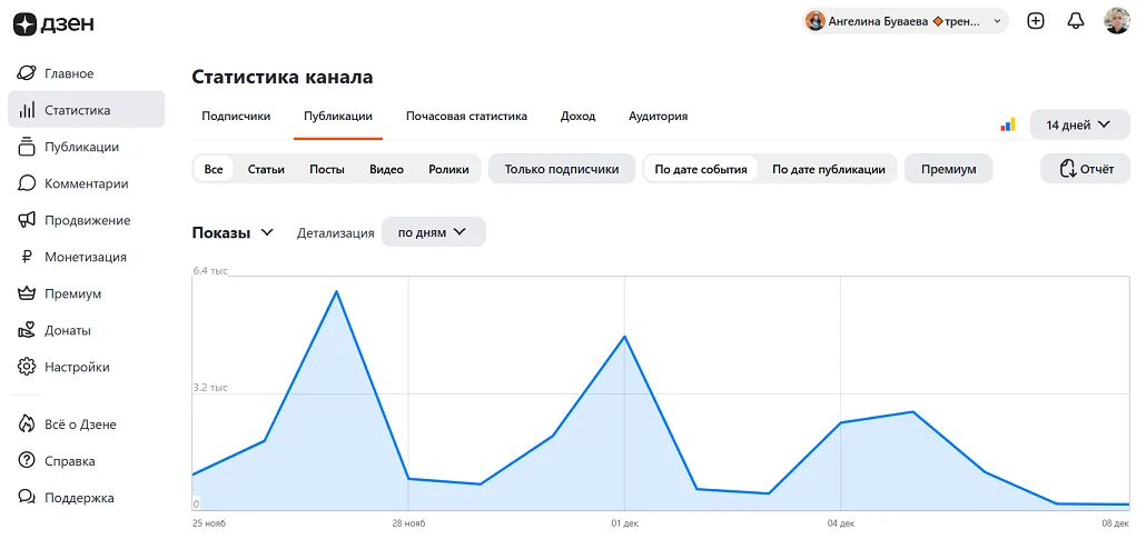 Например, несколько месяцев назад я начала продвигать Дзен-канал после долгого перерыва, чтобы снова сделать его источником лидов и клиентов. Тесты первых гипотез были успешными — благодаря регулярному постингу начал расти охват публикаций и количество подписчиков.