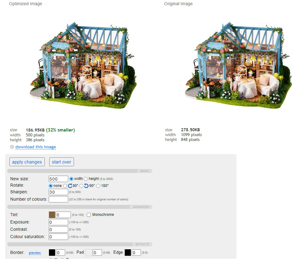 Удобно, что c Webresizer можно не только сжать изображение, но и отредактировать его: изменить размер, повернуть, обрезать, добавить рамку.