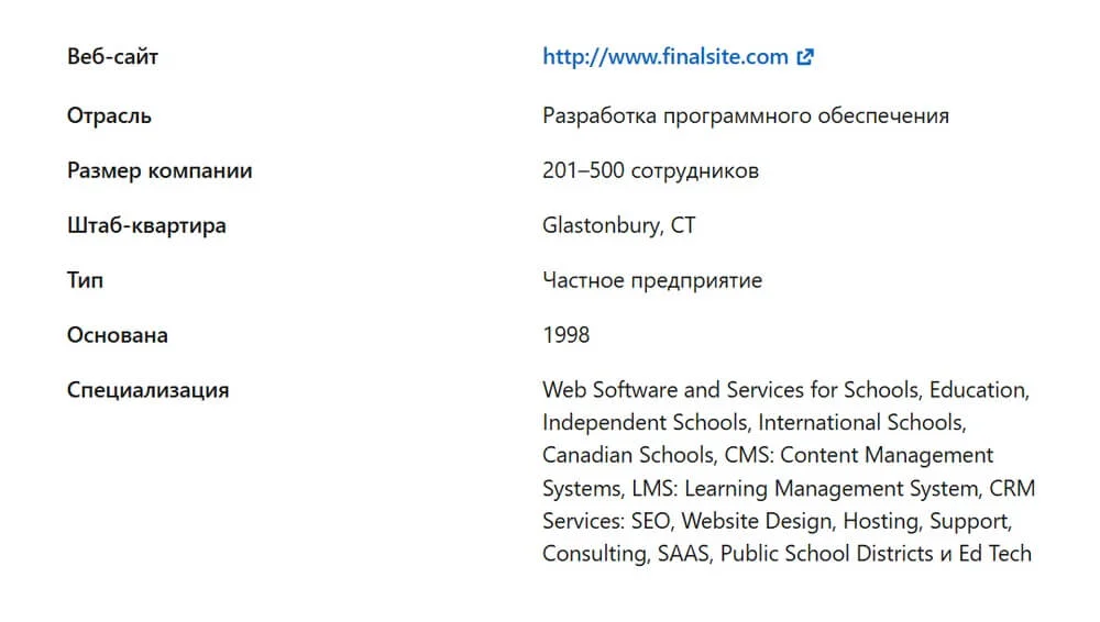 Бизнесу. В «общих сведениях» отображаются разделы с сайтом, адресом, специализацией. Если их заполнить, кандидаты смогут изучить дополнительные ресурсы — проложить маршрут до офиса на картах, посмотреть услуги на сайте.