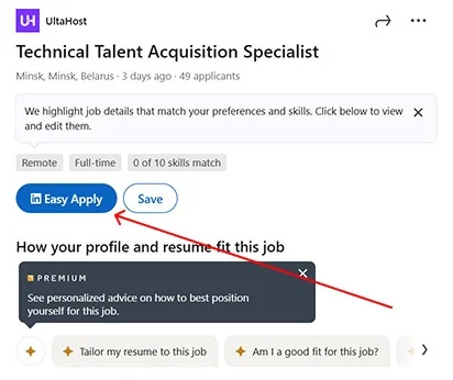 В сервисе есть простая форма отклика — при нажатии на кнопку «Easy Apply» и заполнении простой формы автоматически отправляется резюме и контакты пользователя. Не всегда этого достаточно, особенно если у HR сотни таких «пустых» и шаблонных откликов.