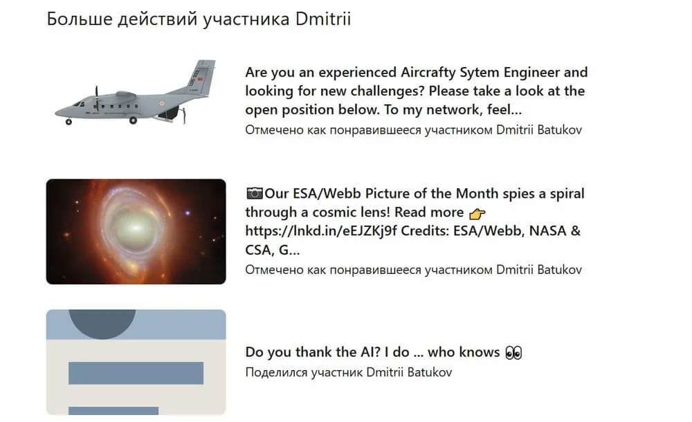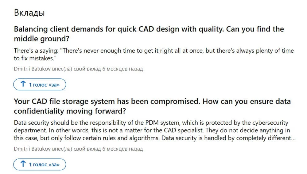Как минимум, можно следить за публикациями других специалистов — ставить лайки, писать комментарии, голосовать. Даже если контент скорее развлекательный или мемный. Такая активность отображается на странице профиля.