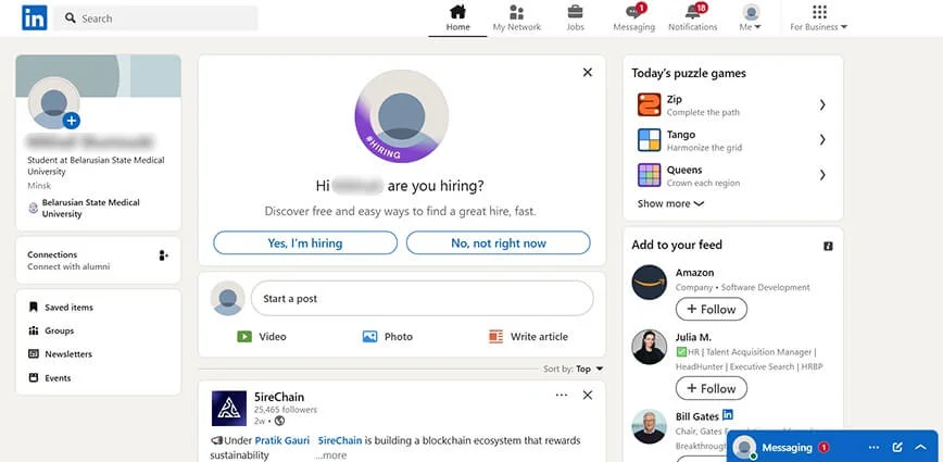 LinkedIn — это гибрид агрегатора вакансий и профессиональной социальной сети. Здесь можно разместить вакансию, собрать отклики, выложить резюме и даже публиковать посты. Поэтому он интересен всем — от руководителей топовых B2B-компаний до фрилансеров-одиночек.