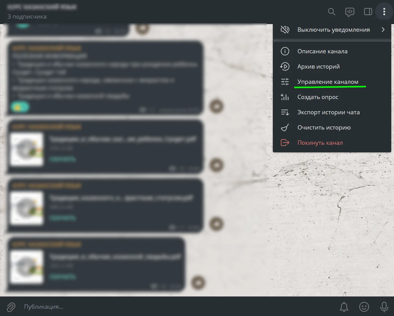 Откройте канал, вызовите меню и выберите раздел «Управление каналом».
