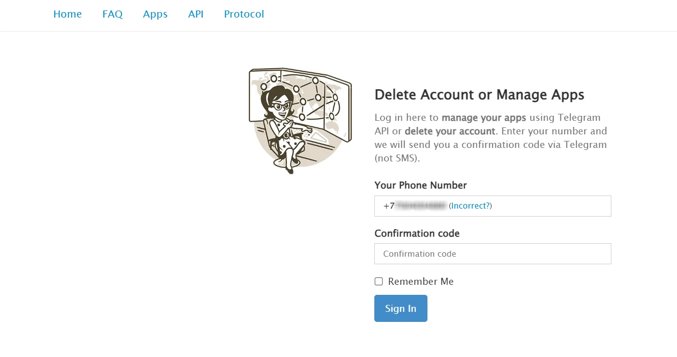Быстро удалить аккаунт Telegram можно с помощью страницы деактивации через веб-браузер. Для этого выполните следующее: