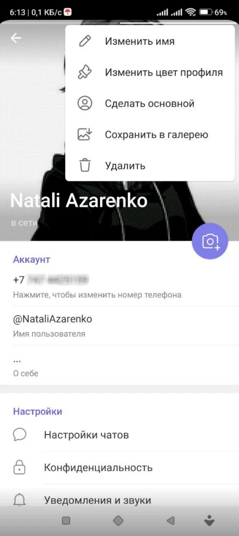 Изменить данные аккаунта. В мобильном приложении кликните на гамбургер-меню в левом верхнем углу. В открывшемся меню нажмите на фото профиля в верхней части экрана. На открывшейся странице вы можете изменить фотографию, имя, номер телефона, имя пользователя и описания. Учтите, что для смены телефона нужно иметь доступ и к текущему, и к новому номеру.
