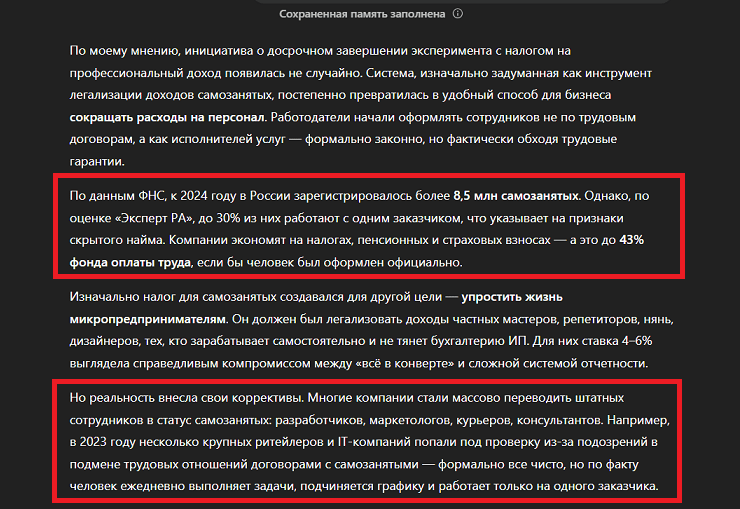 Разделяйте работу на блоки. Тексты лучше править небольшими блоками — например, по разделам или даже абзацам. Если поставите нейросети слишком общую задачу или дадите большой объем, она может схалтурить или что-то пропустить.