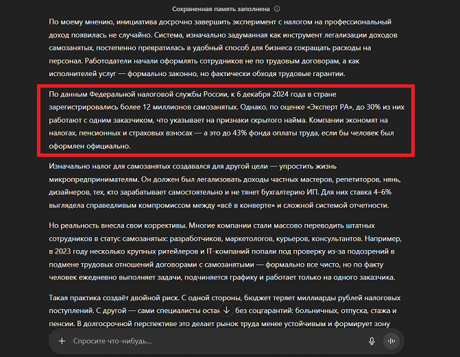 Перепроверяйте факты и цифры. Если часто работаете с аналитическими материалами, указывайте, что каждый факт, дату или результат исследования нужно подкрепить ссылкой на достоверные источники. И обязательно проверяйте, что в них написано. Нейросети могут убедительно галлюцинировать, когда дело доходит до таких задач.