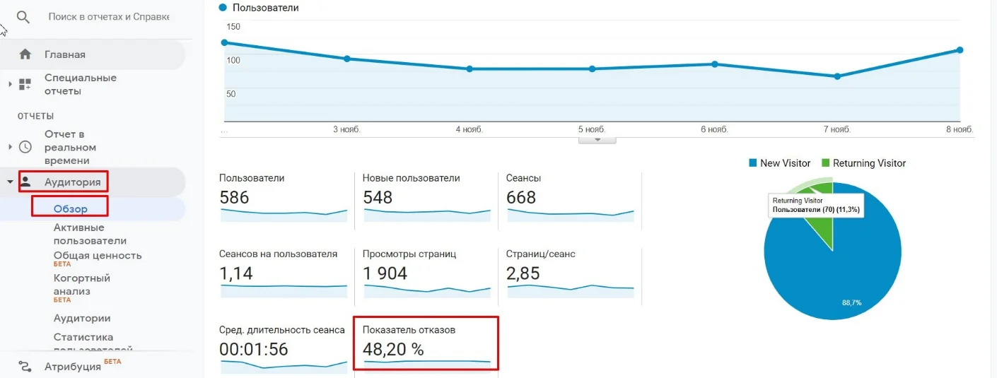 Здесь нет четких цифр: чем выше показатель, тем хуже поведенческие факторы и их негативное влияние на SEO.