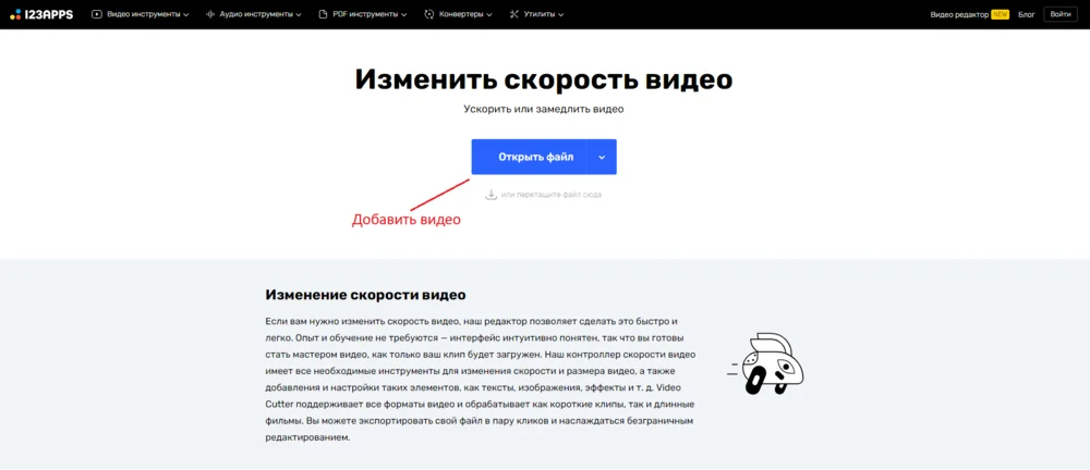 Необязательно скачивать приложение или программу, чтобы изменить скорость видео — можно сделать это онлайн. Например, через простой редактор Online Video Cutter.