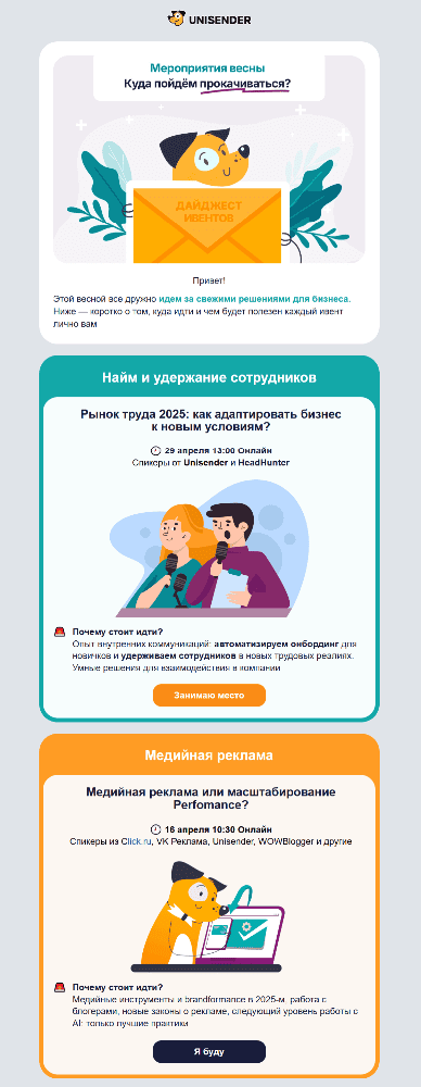 Визуал в рассылке должен быть уместным. Он может быть продающим, информационным, поясняющим или развлекательным, но всегда должен соответствовать теме письма.