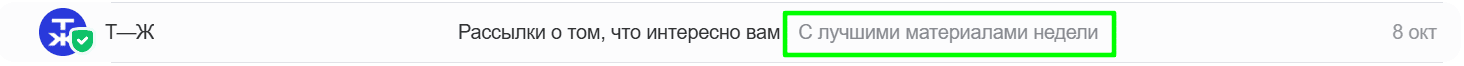 Прехедер (подзаголовок). Краткое предложение или словосочетание, которое отображается сразу после заголовка и перед хедером. Этот элемент должен усиливать название письма и давать подписчику дополнительный повод или контекст для открытия сообщения. Его видно только в папке «Входящие», но не в самом письме.