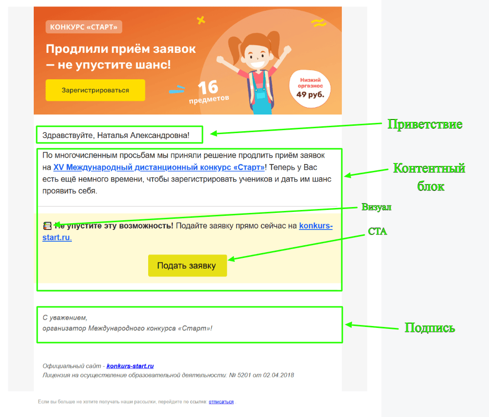 При написании тела письма внимание необходимо уделять каждому отдельному элементу. Каждый компонент вносит свой вклад в установление контакта с подписчиками и мотивацию их к действию.