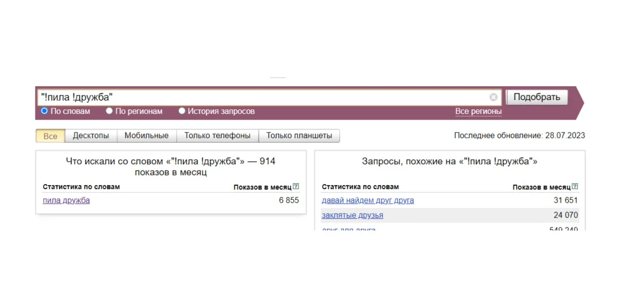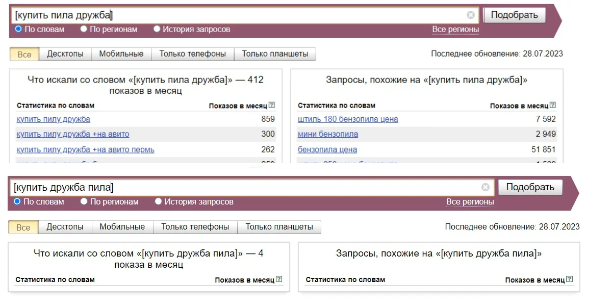 Алгоритмы роботов устроены так, что чем чаще используется фраза, тем выше ее частотность. Запросы могут быть: